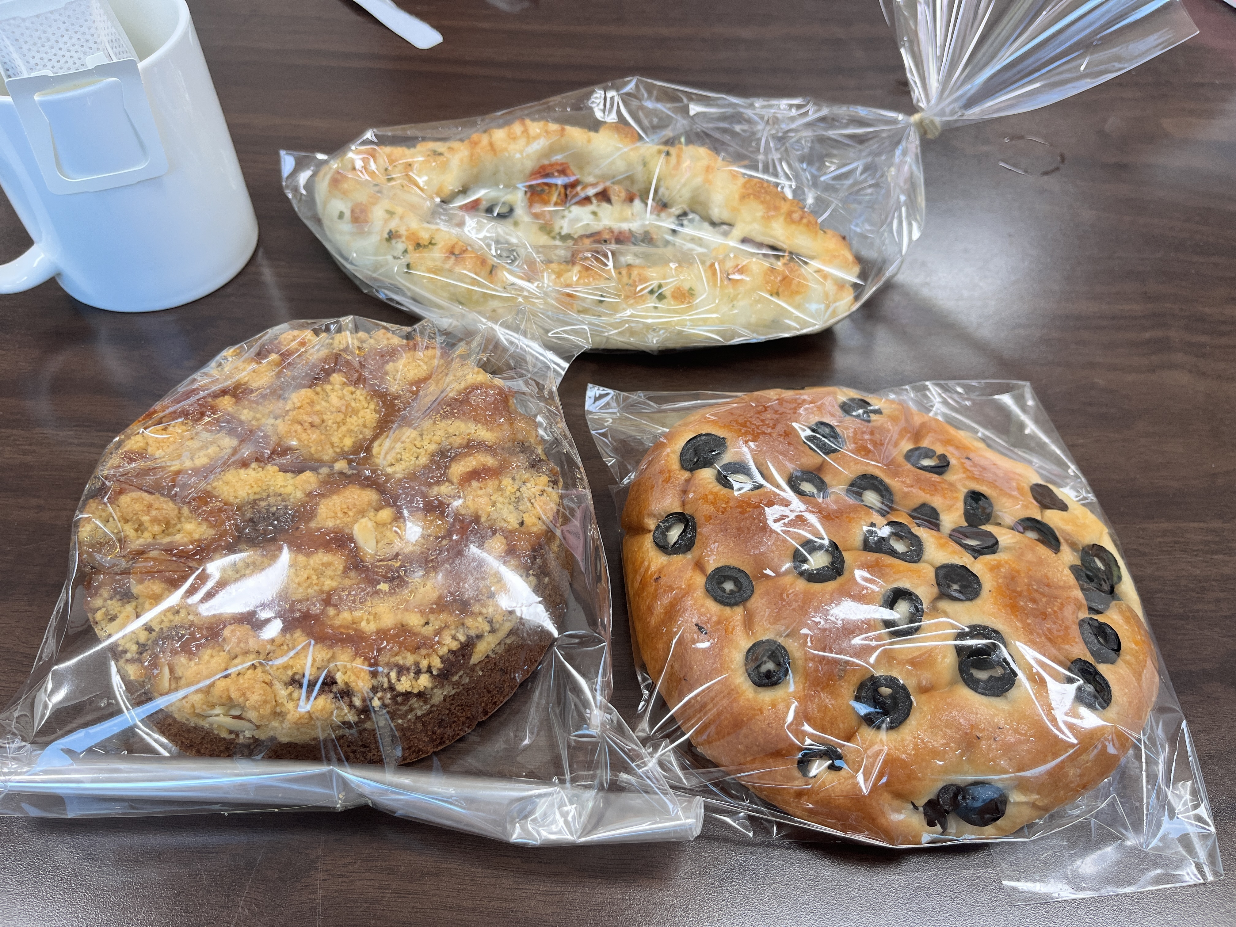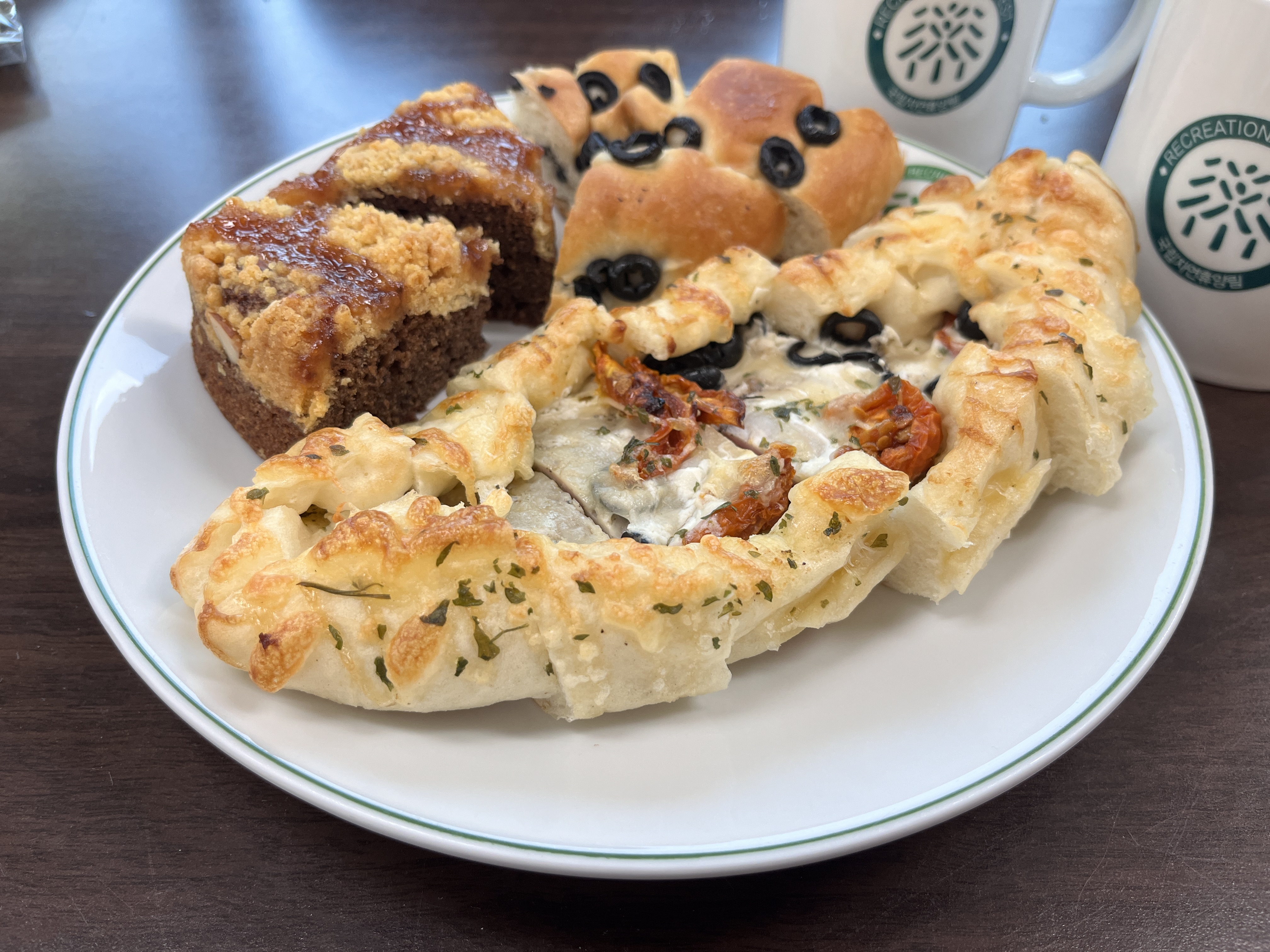 빵의 종류도 제법 있었는데, 올리브 들어간 빵 위주로 고르고..