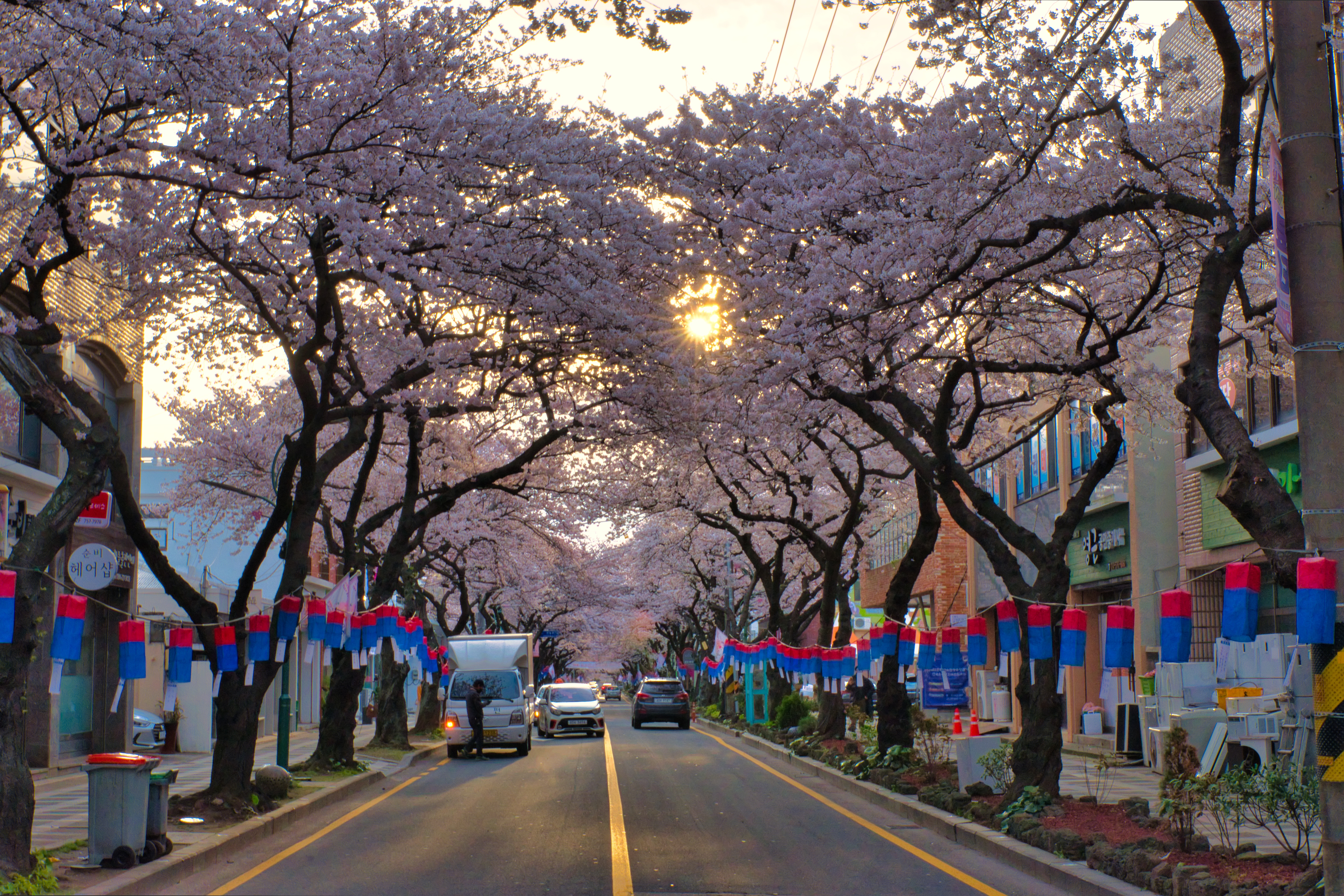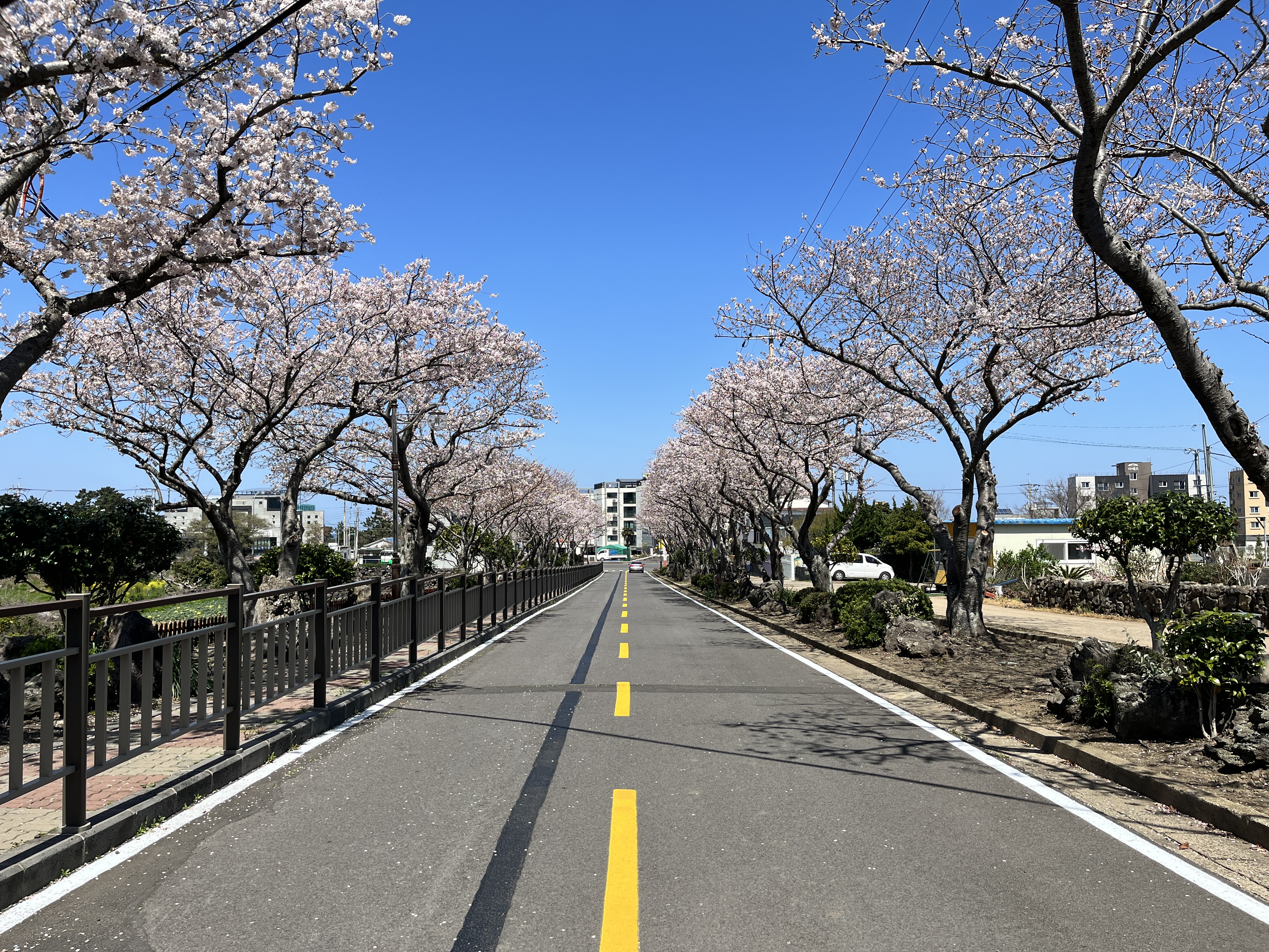 장전초등학교 인근의 벚꽃길과 애월고등학교 앞을 갔는데..